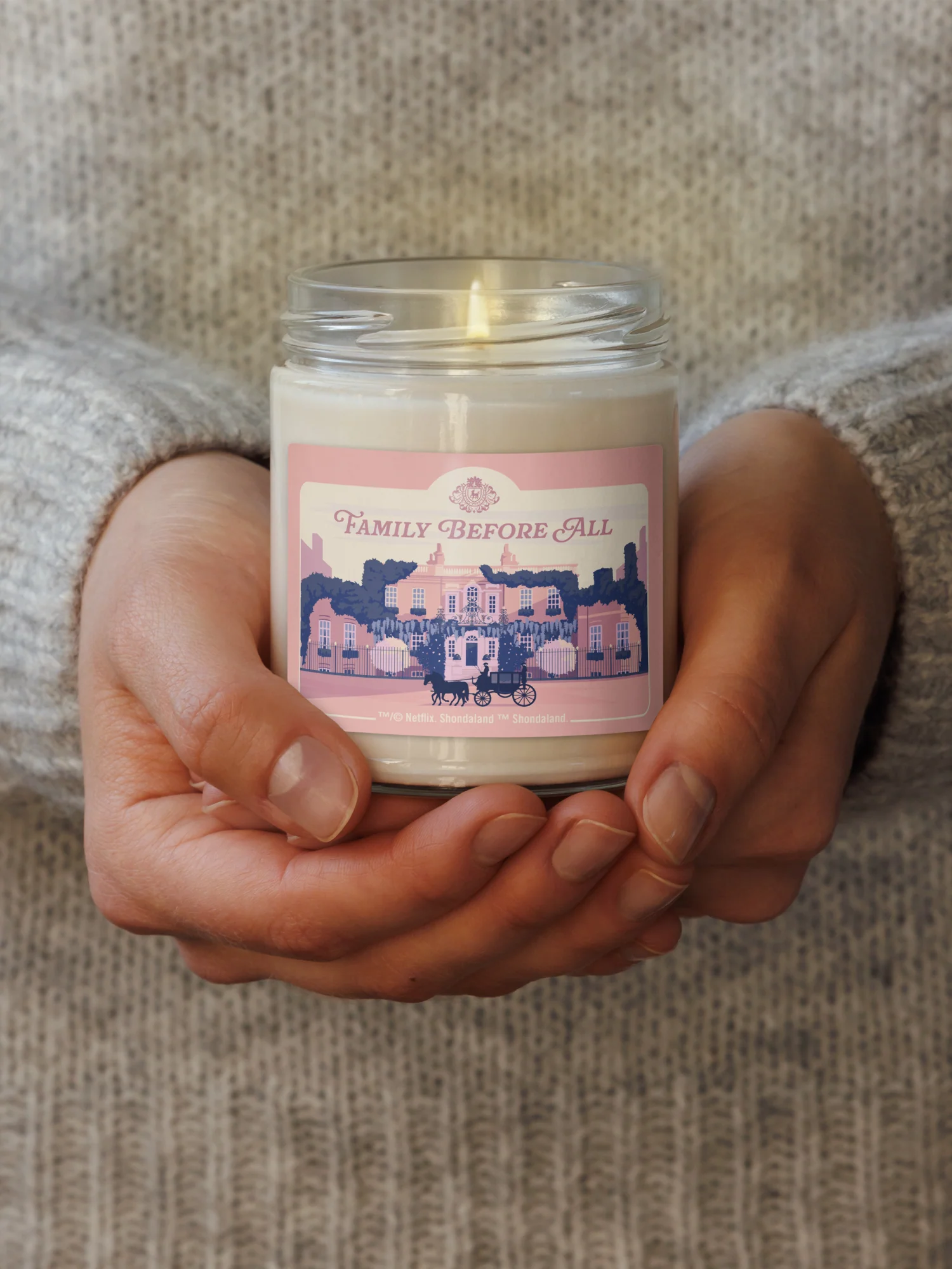 Celebrate the heart of the Bridgerton universe with the Bridgerton Candle – Family Before All. Inspired by the enduring loyalty and warmth of the Bridgerton family, this beautifully crafted candle fills your space with a comforting, refined fragrance that embodies love, tradition, and Regency elegance. Perfect for fans of the series and candle lovers alike, it adds a touch of sophistication to any room.