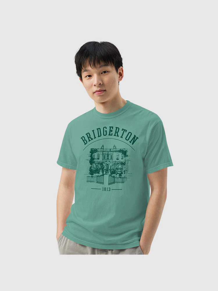 Step into the Regency era with our Bridgerton House Comfort Colors T-shirt, designed for devoted fans of the hit show. Adorned with the illustrious Bridgerton family home, this heavy weight t-shirt effortlessly blends period elegance with contemporary style. Perfect for flaunting your love for all things Bridgerton, whether lounging at home or stepping out with friends!