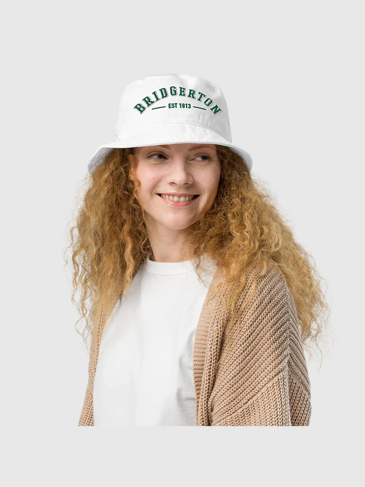 Elevate your style to the height of Bridgerton sophistication with our Varsity Bucket Hat. Featuring a tasteful fusion of classic varsity aesthetics and the charm of the Regency era, this hat is a must-have for any Bridgerton enthusiast. Whether strolling through the park or attending a garden party, channel the grace and elegance of your favorite characters with every wear.