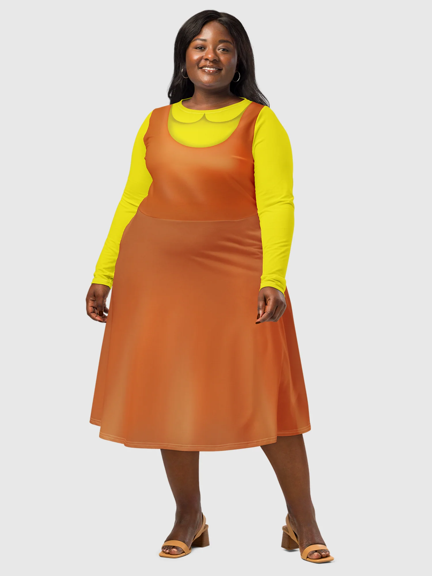 Relive the terror of the first game with the Squid Game Young-Hee Season 1 Cosplay Midi Dress. Embody the unforgettable and chilling doll in her original outfit. Perfect for Halloween, conventions, or making a memorable entrance.