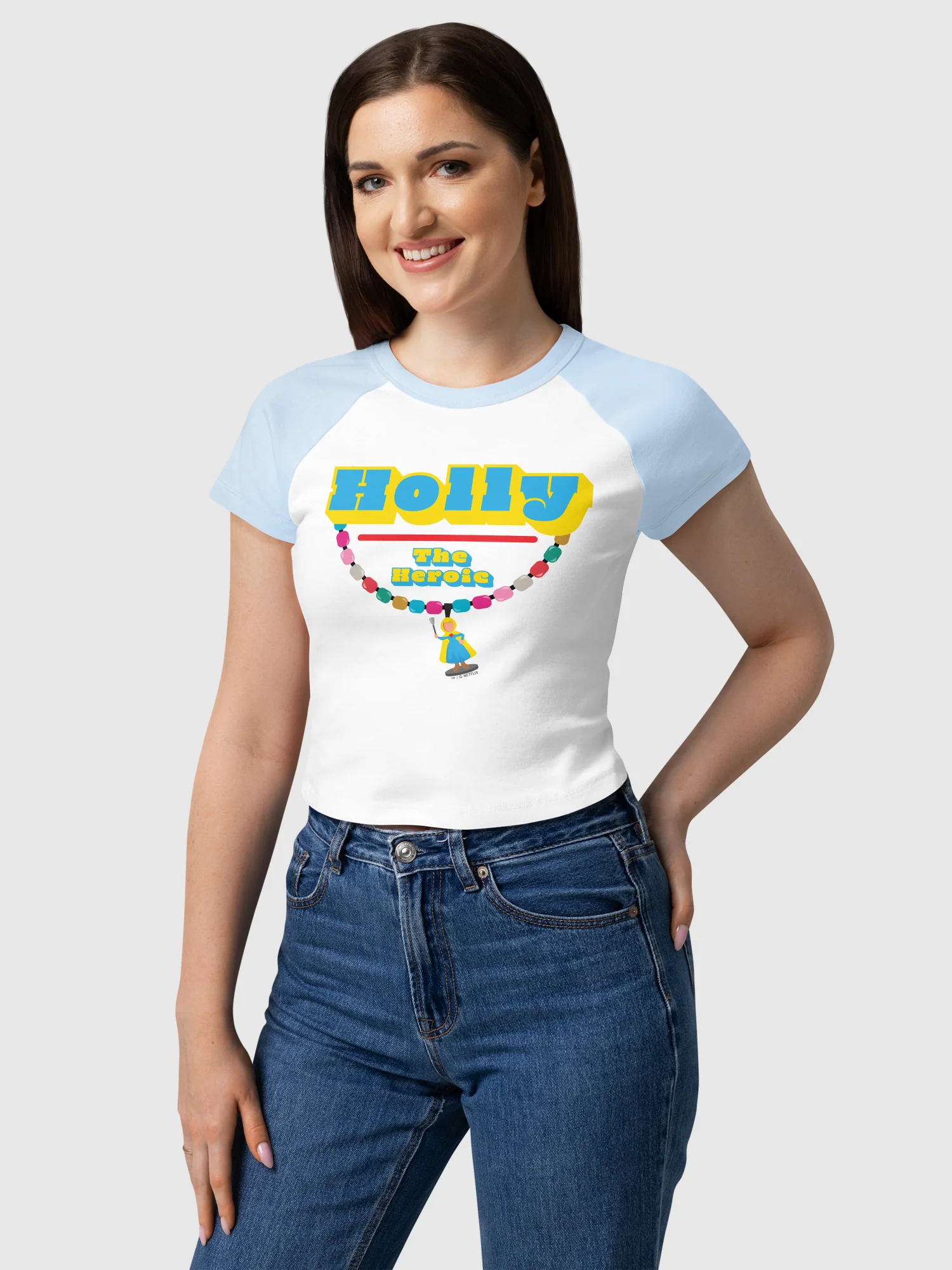 Add a subtle touch of Hawkins nostalgia to your everyday look with the Stranger Things Women's Baby Raglan Tee featuring the Holly Charm design. Inspired by one of the series' sweetest and most symbolic characters, this fitted baby tee blends fan-favorite style with a playful, modern silhouette. Perfect for casual days, binge-watch nights, or layering under your favorite jacket, it's a must-have for fans who love understated Stranger Things flair.
